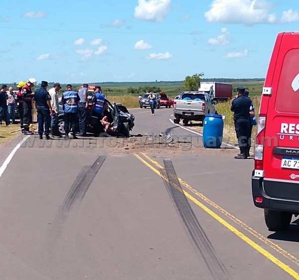 El hecho se registró a la altura del km 11, aproximadamente de la ruta que une San Salvador con Ubajay y hay dos personas fallecidas que circulaban en el automóvil.
