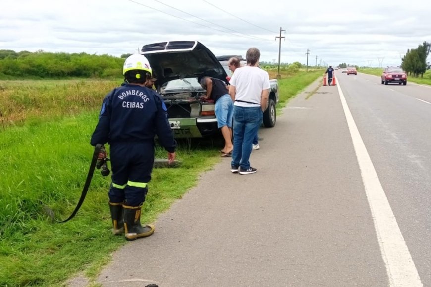 Al llegar la dotación, el fuego ya había sido sofocado con matafuego de la camioneta y gente que ayudó para controlar el incendio, por lo que quedó afectado el motor del vehículo.