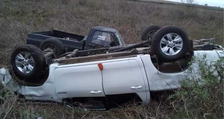 Los conductores masculinos, domiciliados en Villaguay, se dirigían de oeste a este, cuando de pronto (según ellosaellos) uno de los vehículos se le explota un neumático provocando el vuelco de las dos camionetas.