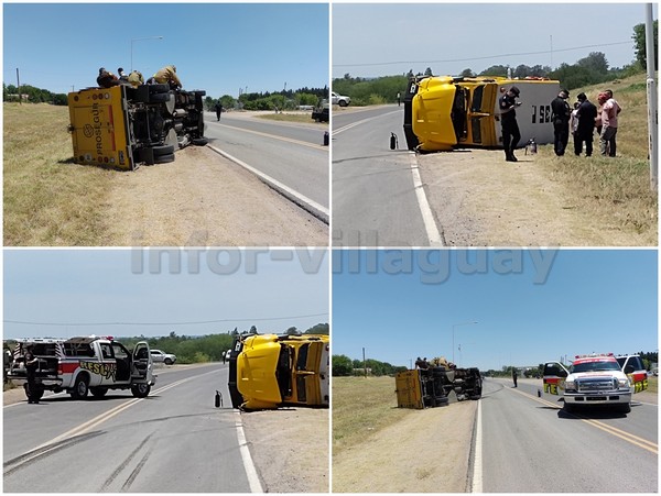 Siendo aproximadamente las 11.35 hs Personal Policial interviene por un vuelco de un camión de caudales, perteneciente a la empresa PROSEGUR, el mismo circulaba por ruta 135 y al llegar a la intersección con boulevard Ferrari, por causas que se tratan de establecer el conductor pierde el control del rodado y vuelca. Como consecuencia los tres ocupantes resultaron con lesiones siendo asistidos y trasladados hasta el hospital local.