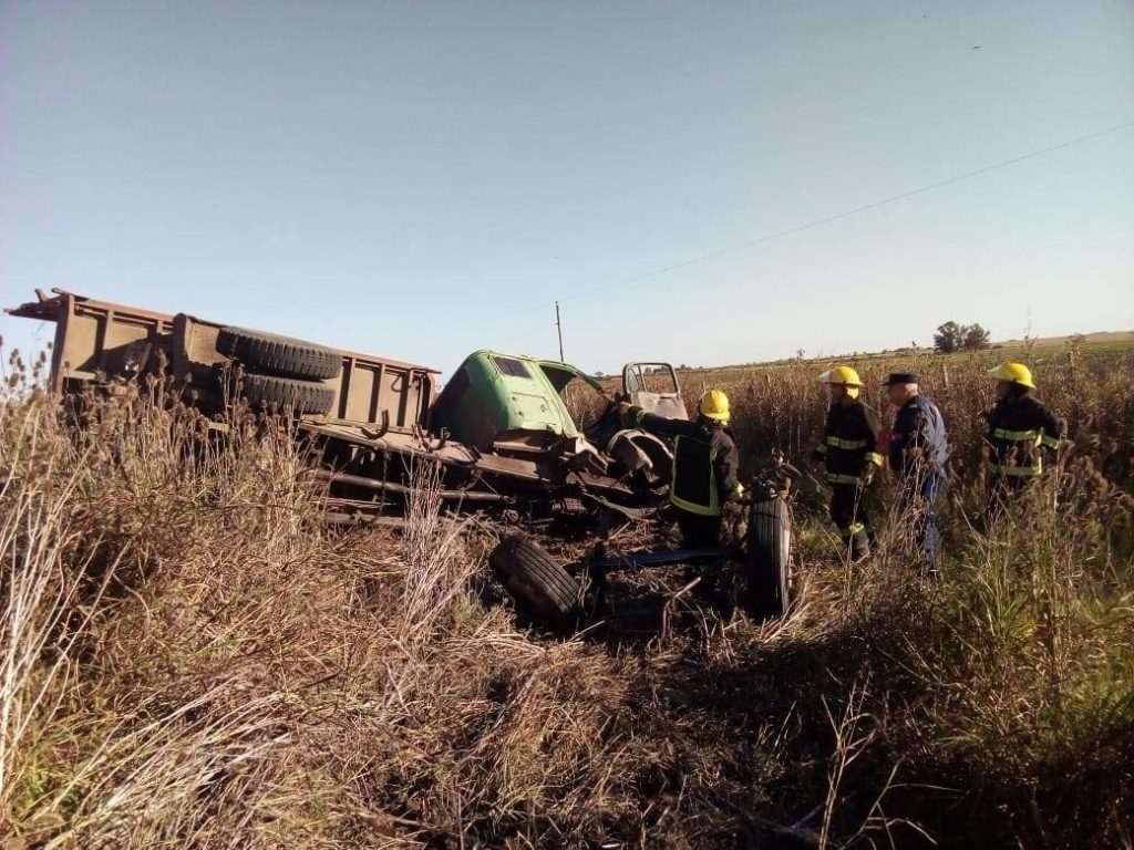 El vehículo viajaba desde San Marcial en dirección a Basavilbaso. Y el siniestro se habría desencadenado luego de que reventara un neumático; el pesado vehículo quedó a unos metros de la banquina Este.
