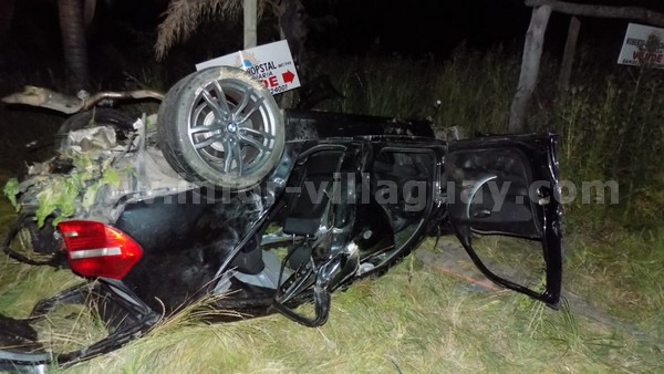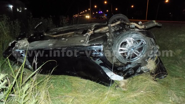 Por  razones que se tratan de establecer el conductor del automóvil marca  BMW  modelo 302-120d, un joven de 23 años de edad, que se encontraba acompañado de otros dos de   25 años respectivamente, pierde el control del rodado momento en que se conducía por el mencionado acceso en sentido  sur a norte y al cruzar un lomo de burro que se encuentra próxima a la escuela Nº 86, pierden control   sin poder detener la  marcha del vehículo, impactando con varios elementos del lugar entre ellos carteles y postes de alumbrado público, volcando a unos 200 metros aproximadamente.