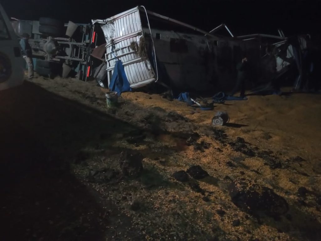 VUELCO EN LA RUTA 18 KM 102 – CAMIÓN CARGADO CON MAIZ