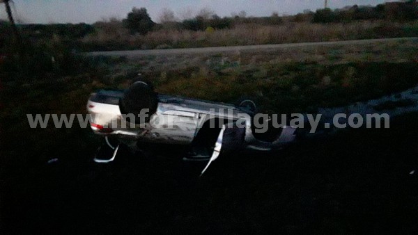 Apenas asomaban los primeros rayps de sol de este Martes 20 de Julio entre los puentes Gualeguay y lo Zapata, mas presisamente en el km 142 de la Ruta nacional 18, se producia un vielco de un vehiculo Fluence.