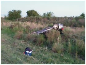 Por razones que se tratan de establecer un vehículo BMW  pierde el control del rodado produciendo el vuelco del mismo; en él se conducían tres hombres todos mayores de edad, quienes se dirigían desde la ciudad de Villaguay hacía Concordia resultando los tres ocupantes del rodado sin lesiones.-