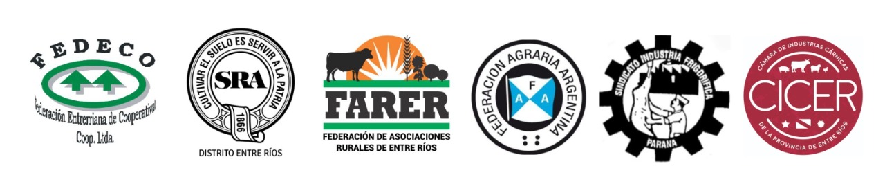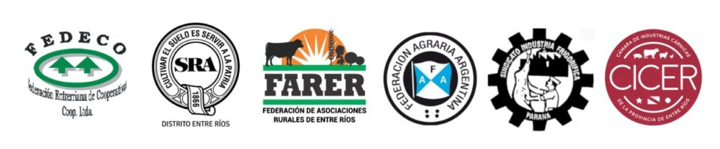 FARER | Federación de Asociaciones Rurales de Entre Ríos – SRA | Sociedad Rural Argentina – Distrito Entre Ríos – FAA | Federación Agraria Argentina – FEDECO | Federación Entrerriana de Cooperativas – Sindicato de la Carne Filial Paraná – CICER | Cámara de Industrias Cárnicas.