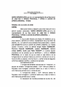 En este sentido, según se desprende del fallo compartido con ERA Verde, se lee como argumento de la magistrada: “La parte actora ha traído prueba que (…) da cuenta de los problemas de salud que viene sufriendo la niña (…) y vestigios de daño genético, el cual podría acarrearle consecuencias futuras”. Este estudio, junto con la exposición crónica alegada y el riesgo para la niñez, fue determinante para considerar acreditada “la verosimilitud del derecho y el peligro en la demora” alegada para dictar la cautelar.