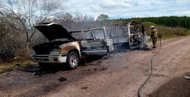 Incendio destruyó por completo una camioneta, una moto y una casa rodante