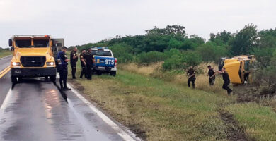 Rescataron a camionero atrapado en la cabina tras volcar en la Autovía Artigas