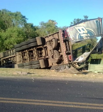 RUTA 12 – Camión despistó en una curva y volcó sobre la banquina