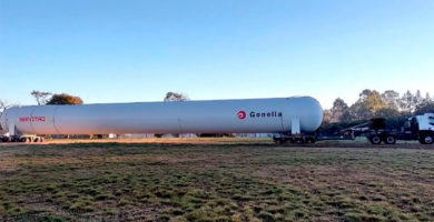 Camión que trasladaba gran tanque fabricado en Gualeguaychú, quedó atascado en puente