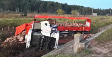 Se durmió y terminó volcando su camión en plena ruta 14
