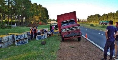 RUTA 14: Camión cargado con citrus volcó en la banquina