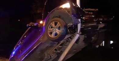 LA PAZ – destrozó su automóvil BMW al chocarlo contra un poste