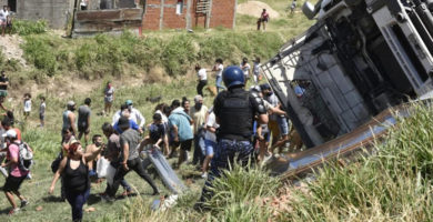 Volcó un camión y vecinos se agolparon para llevarse la mercadería