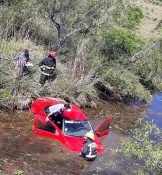 RUTA 14: El chofer de un remís se habría dormido al volante, volcó y terminó bajo de un puente