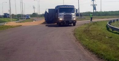 FEDERAL: VUELCO DE UN ACOPLADO EN LA ROTONDA DE LAS RUTA 127 Y 6