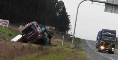 Un camión cargado con maderas despistó y volcó en ruta 14
