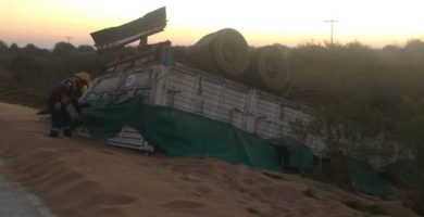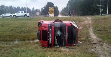 Camión mordió la banquina y volcó en la Ruta 14: hospitalizaron al chofer