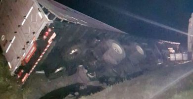 CONCORDIA – Un camión volcó en ruta 14