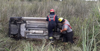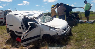 Volcó en la Ruta 14 y quedó atrapado en el vehículo