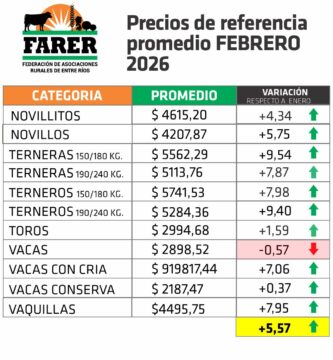 Remates ganaderos en Entre Ríos: febrero cerró con una suba promedio del 5,57 %