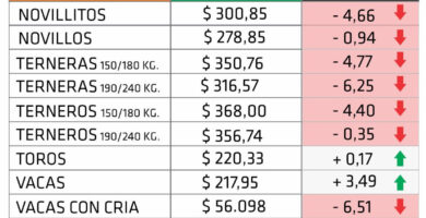 NOVIEMBRE VOLVIÓ A MARCAR UN RETROCESO EN LOS PRECIOS DE LA HACIENDA EN PIE
