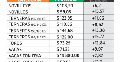ENTRE RÍOS: JULIO MARCÓ UN ALZA EN LOS PRECIOS DE LA HACIENDA EN CASI TODAS LAS CATEGORÍAS