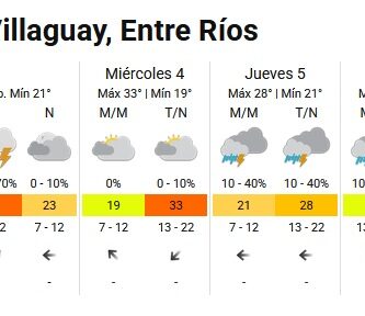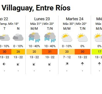 Tiempo para Villaguay y en los principales destinos turísticos del país, qué pasará con la temperatura y la lluvia.?