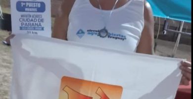 SILVINA CROSA PARTE DEL TRIBUTO A LOS 40 AÑOS DE MALVINAS CRUZÓ CON 12 NADADORES EL RIO DE LA PLATA