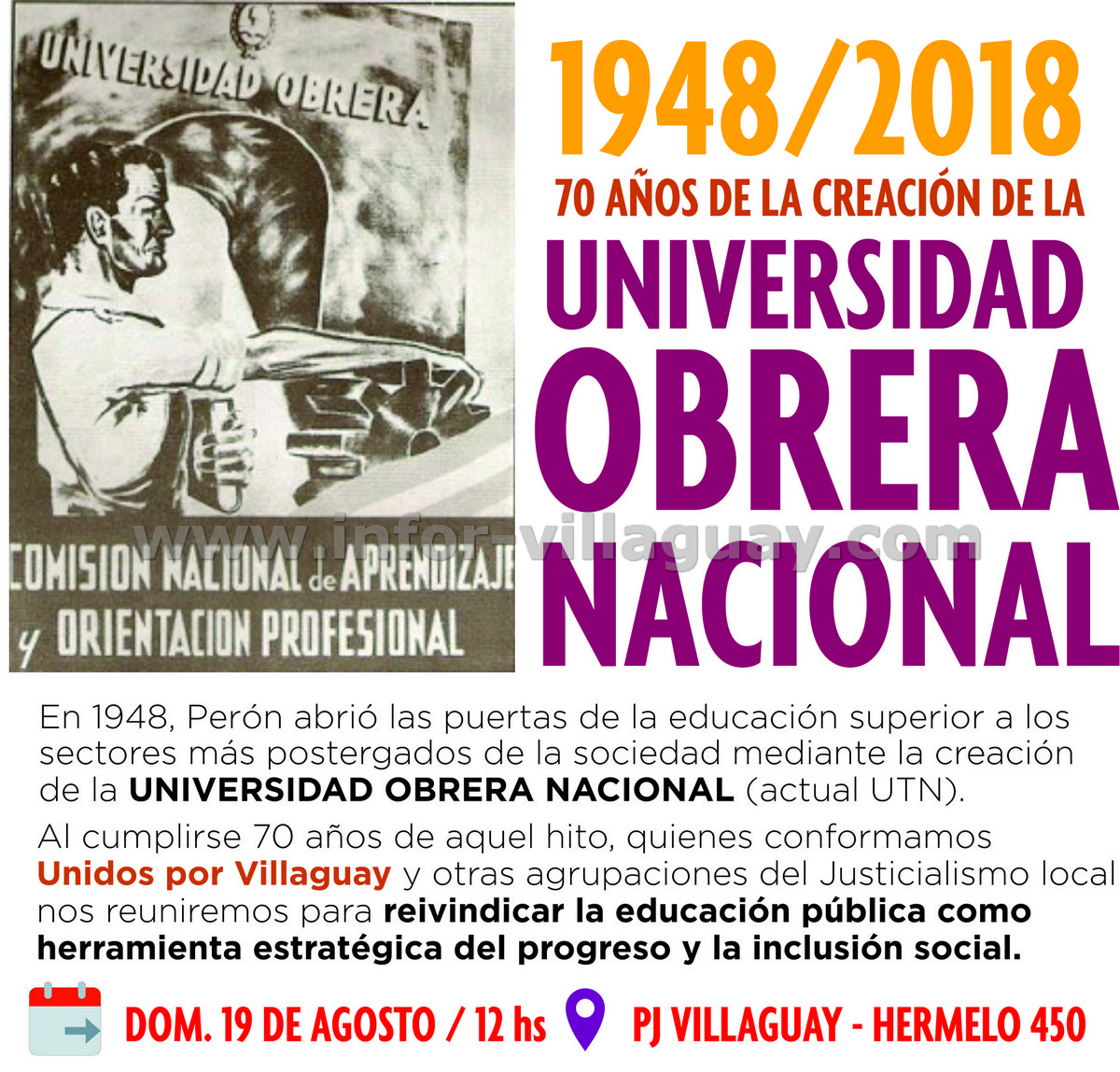 Recordarán los 70 años de la creación de la Universidad Obrera Nacional (actual UTN)
