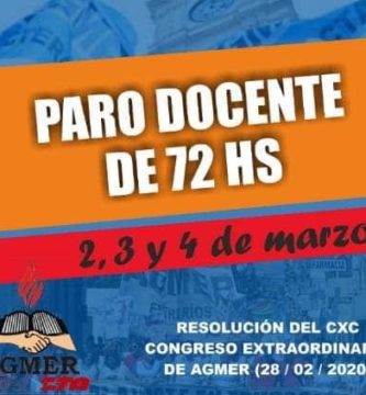Agmer adhiere al paro del 30 de abril convocado por CTA y Camioneros