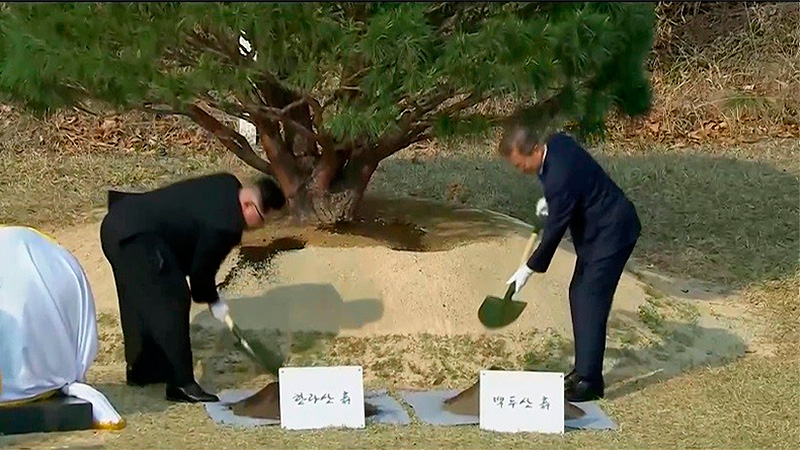 DOS COREAS – Kim y Moon plantan un árbol en una simbólica ceremonia