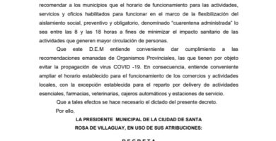 EN VILLAGUAY DESDE HOY SE EXTIENDE HORARIO DE ACTIVIDADES DE 09 A 18