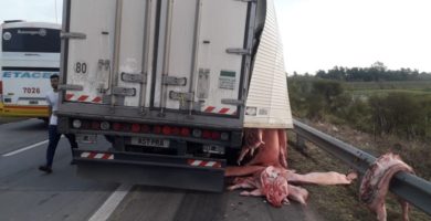 TRANSPORTE DE CARNES SE DESFONDO Y PERDIÓ SU MERCADERÍA SOBRE RUTA 168