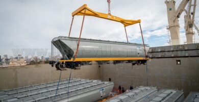 Arribó al puerto de Buenos Aires la segunda tanda de 90 tolvas cerealeras 0KM