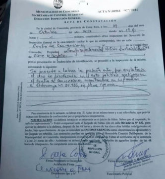 CONCORDIA – Pirotecnia en acto del PJ: inspector labró acta de la infracción pero los organizadores se negaron a firmarla