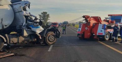 RUTA 14: Colisionaron dos camiones y hubo que rescatar a uno de los conductores