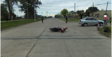 Accidente entre una motocicleta y automovil en calle Savio y Paso