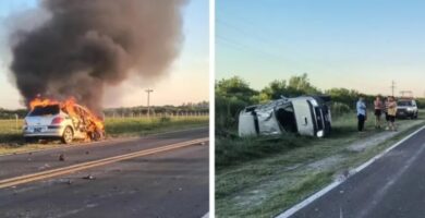 Ruta 12: Choque y vuelco, terminó con un vehículo completamente incendiado