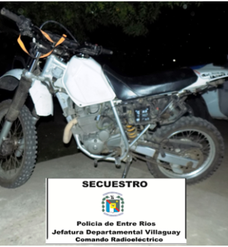 Personal policial del comando radioeléctrico de la Jefatura Departamental Villaguay secuestró una motocicleta marca Honda XR 250Cc por presentar adulteración en cuadro y motor.-