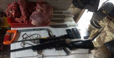 BRIGADA LA PAZ – DOS ALLANAMIENTOS EN SAN GUSTAVO – CON SECUESTRO DE CARNE VACUNA, ARMAS Y CARTUCHERIA