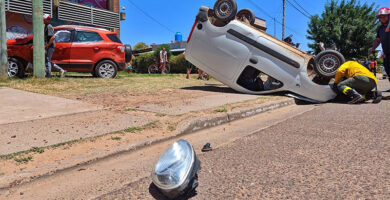 CONCORDIA – Persecución policial culminó con choque, vuelco y dos personas hospitalizadas