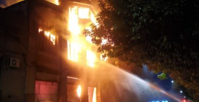 Bomberos de Colón asisten a sus pares uruguayos en un incendio de magnitud en pleno centro de Paysandú
