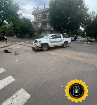 Fuerte choque entre moto y camioneta en plena ciudad, un joven fue trasladado al hospital