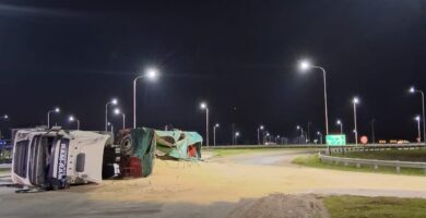 Siniestro vial en el Acceso Norte de Villaguay: vuelco de camión dejó un lesionado