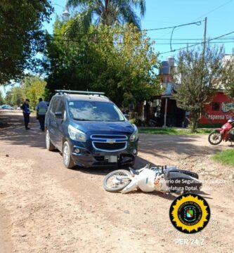 COLON: Choque entre auto y moto,una mujer sufrió fractura y otra resultó herida