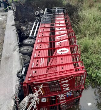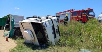 Volcó un camión en Ruta 12 y hubo una importante perdida de combustible