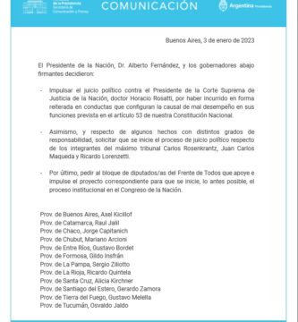 Grave. Bordet desmiente a Nación y aclara que no firmó el pedido de juicio político