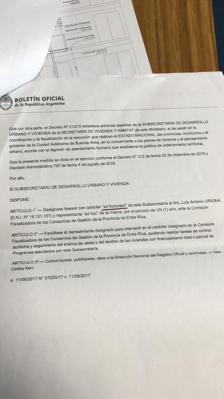 Pedido de informes: Uriona aclaró que su cargo en la Secretaría de Vivienda de la Nación es “ad honorem”